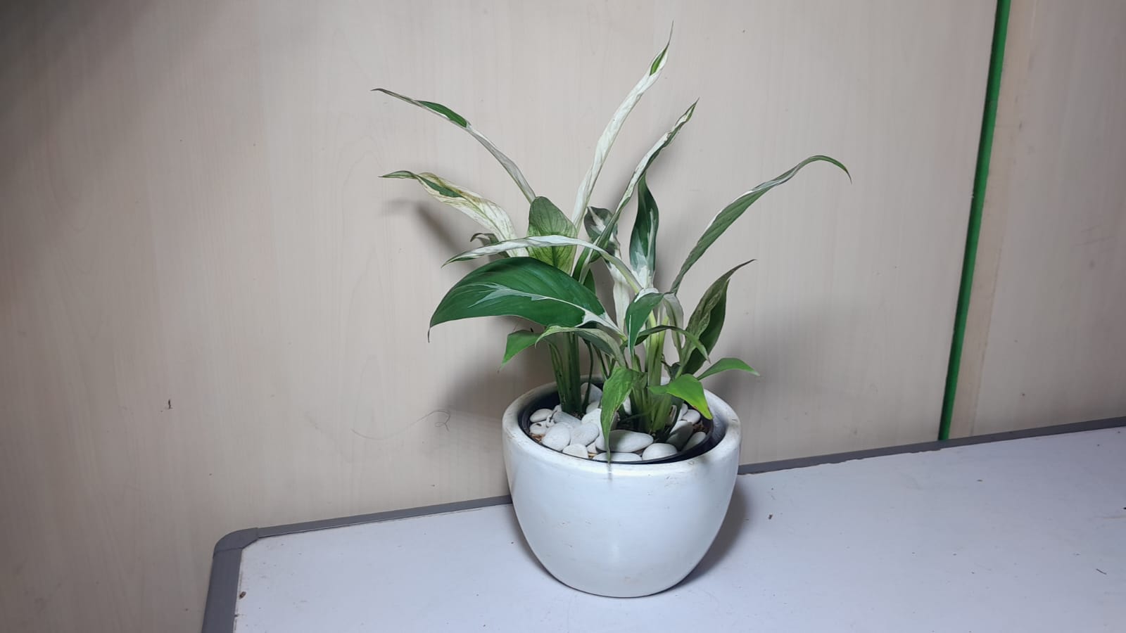 - tanaman meja aglaonema snow white, kemudian